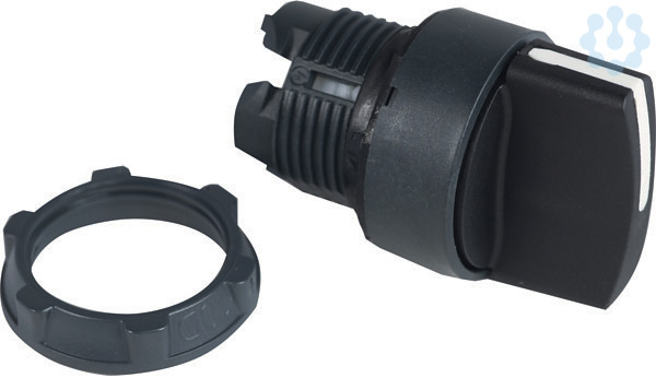 Kunststoffprogramm DM 22 mm Frontelement für modularen Aufbau. Wahlschalter. Frontelement Wahlschalter, L + R rastend. Knebel kurz, Stellungen 2. Frontelement, Knebeltaste, schwarz, rund (auch in weiß, grün, rot und gelb lieferbar), Schutzart IP66/67/69/69K.