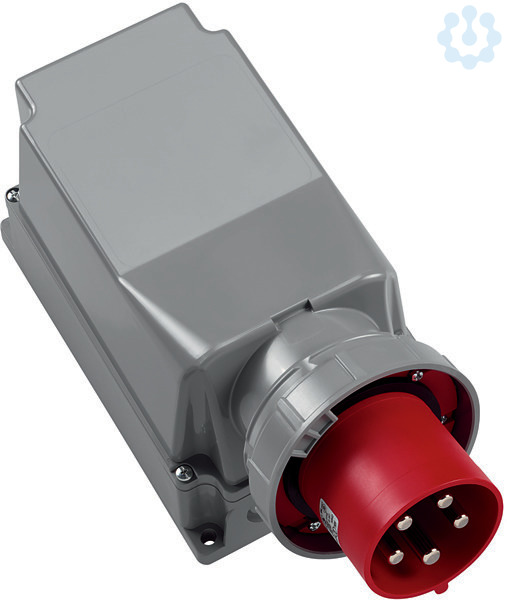 CEE Wandgerätestecker nach IEC 60309, EN 60309, VDE 0623, 15° geneigt, Schutzart wasserdicht IP67, 125A, 5-polig, Nennspannung 230V AC, 9h, blau, HighPower-Ausführung, vernickelte Kontakte mit Pilotkontakt, Schraubklemmen, Leitungseinführung oben, unten oder hinten (M63), Gehäuse um 180° drehbar, inklusive Blindverschraubung