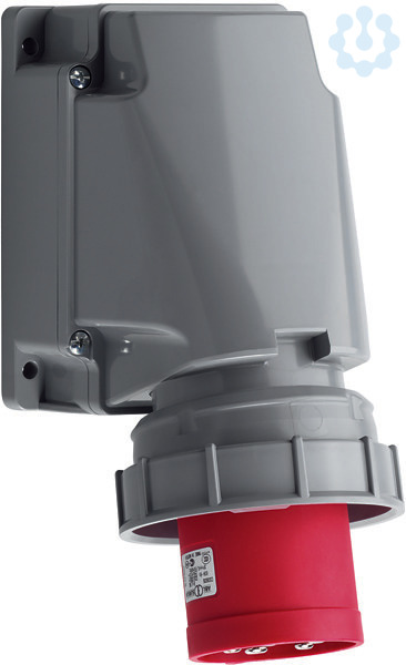 CEE Wandgerätestecker nach IEC 60309, EN 60309, VDE 0623, 15° geneigt, Schutzart wasserdicht IP67, 63A, 5-polig, Nennspannung 230V AC, 9h, blau, HighPower-Ausführung, vernickelte Kontakte mit Pilotkontakt, Schraubklemmen, Leitungseinführung oben, unten oder hinten (M32), Gehäuse um 180° drehbar, inklusive Blindverschraubung