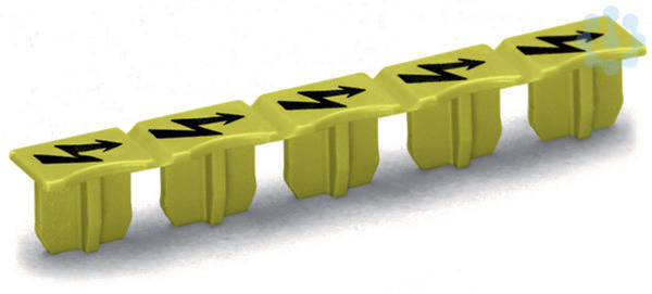 Warnabdeckung. mit schwarzem Blitzpfeil. für 5 Klemmen. gelb
