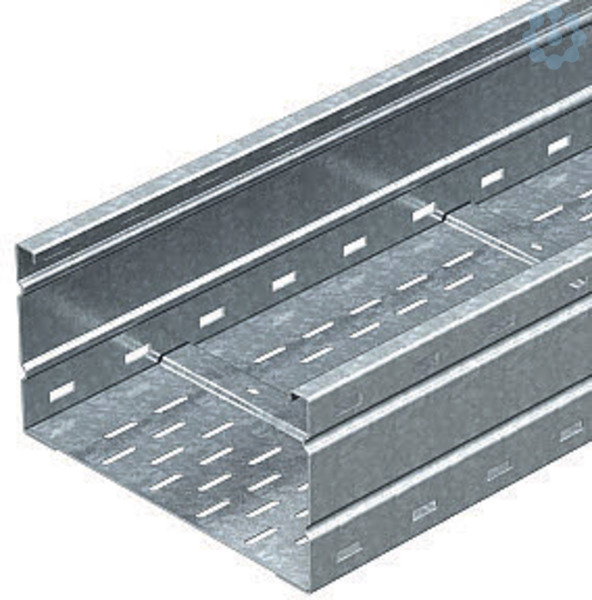 Weitspannkabelrinne für die Überbrückung von Stützabständen ab 3 m. Der Seitenholm ist durchgängig gelocht und zur Verstärkung und zum Kabelschutz oben abgekantet. Bodenblech und Seitenholme sind mit Druckfügepunkten fest verbunden.