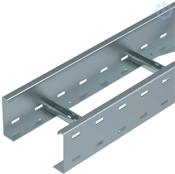 Weitspannkabelleiter für die Überbrückung von Stützabständen ab 3 m. Der Sprossenabstand beträgt 300 mm. Der Seitenholm ist durchgängig gelocht und zur Verstärkung und zum Kabelschutz oben abgekantet. Die Befestigung der Weitspannkabelleiter auf dem Ausleger erfolgt mit Klemmstücken Typ LKS 60/5.