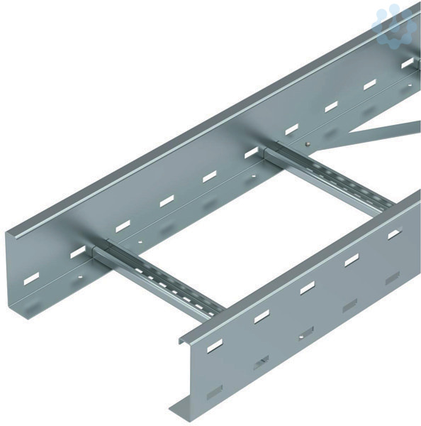 Weitspannkabelleiter für die Überbrückung von Stützabständen ab 3 m. Der Sprossenabstand beträgt 300 mm. Der Seitenholm ist durchgängig gelocht und zur Verstärkung und zum Kabelschutz oben abgekantet. Die Befestigung der Weitspannkabelleiter auf dem Ausleger erfolgt mit Klemmstücken Typ LKS 60/5.