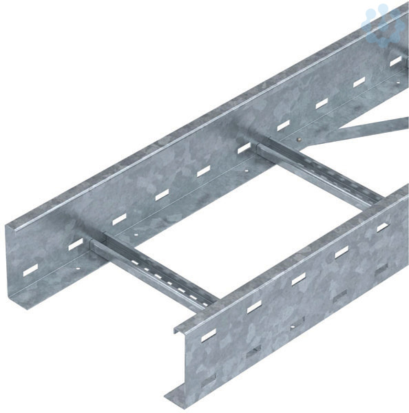 Weitspannkabelleiter für die Überbrückung von Stützabständen ab 3 m. Der Sprossenabstand beträgt 300 mm. Der Seitenholm ist durchgängig gelocht und zur Verstärkung und zum Kabelschutz oben abgekantet. Die Befestigung der Weitspannkabelleiter auf dem Ausleger erfolgt mit Klemmstücken Typ LKS 60/5.