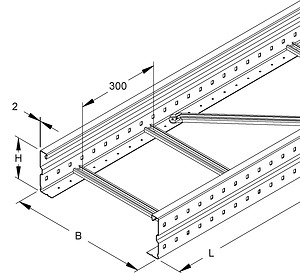 Weitspannkabelleiter, nach DIN EN 61537, mit besonders stark ausgeprägten, durchgehend gelochten und gesickten Seitenholmen, sowie eingenieteten Sprossen aus C-Profil mit 16 mm Schlitzweite. Passende Bügelschellen (B... und BK...) finden Sie im KI-Katalog. Stoßstellenverbinder WSV 150.500 bitte gesondert bestellen.