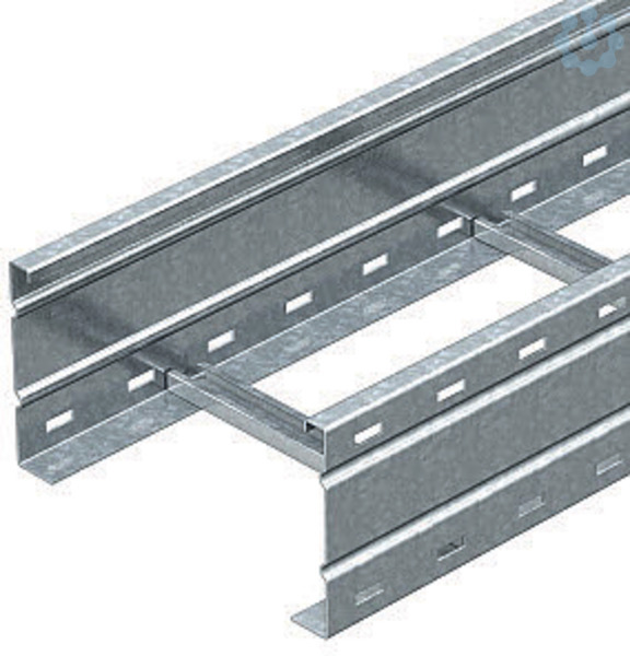 Weitspannkabelleiter für die Überbrückung von Stützabständen ab 3 m. Der Sprossenabstand beträgt 300 mm. Der Seitenholm ist durchgängig gelocht und zur Verstärkung und zum Kabelschutz oben abgekantet. Die Befestigung der Weitspannkabelleiter auf dem Ausleger erfolgt mit Klemmstücken Typ LKS 60/5.