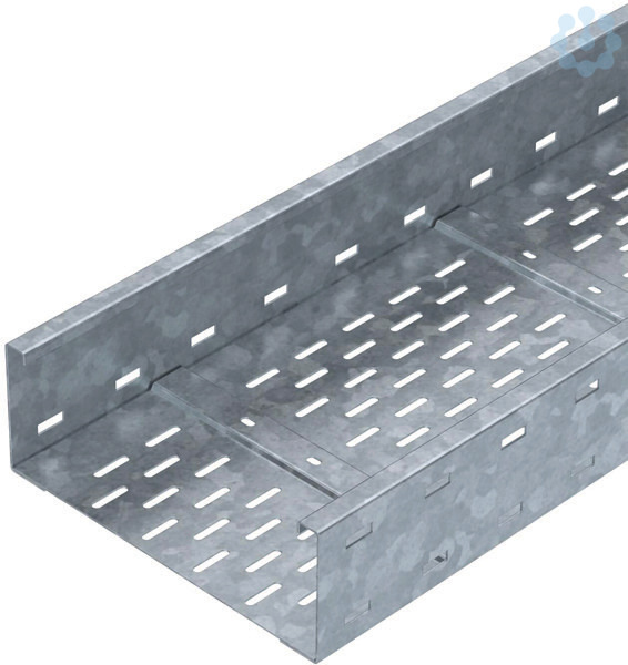 Weitspannkabelrinne für die Überbrückung von Stützabständen ab 3 m. Der Seitenholm ist durchgängig gelocht und zur Verstärkung und zum Kabelschutz oben abgekantet. Bodenblech und Seitenholme sind mit Druckfügepunkten fest verbunden.