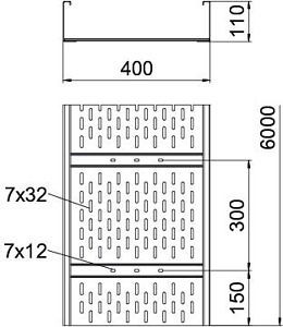 Weitspannkabelrinne für die Überbrückung von Stützabständen ab 3 m. Der Seitenholm ist durchgängig gelocht und zur Verstärkung und zum Kabelschutz oben abgekantet. Bodenblech und Seitenholme sind mit Druckfügepunkten fest verbunden.