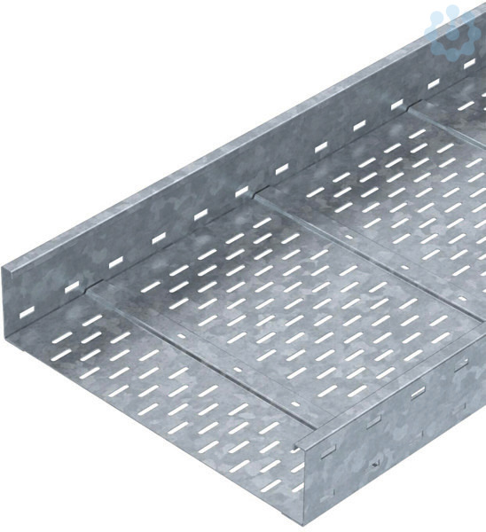 Weitspannkabelrinne für die Überbrückung von Stützabständen ab 3 m. Der Seitenholm ist durchgängig gelocht und zur Verstärkung und zum Kabelschutz oben abgekantet. Bodenblech und Seitenholme sind mit Druckfügepunkten fest verbunden.