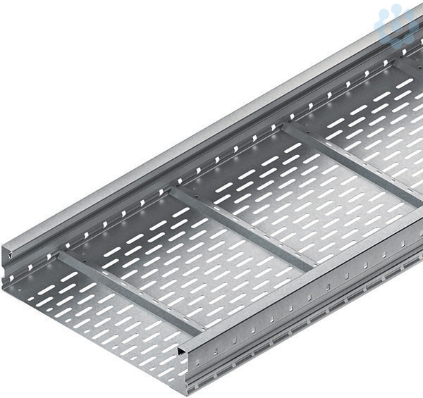 Weitspannkabelrinne, nach DIN EN 61537, mit durchgehend gelochten und gesickten Seitenholmen, sowie eingenietetem Boden mit versetzt angeordneter Perforation und gelochten Quersicken zur Stabilisierung und Trennstegbefestigung, einschließlich einer Stoßstellenleiste RSL... und anteilmäßigem Befestigungszubehör aus Edelstahl. Stoßstellenverbinder WSV 105.390 bitte gesondert bestellen.