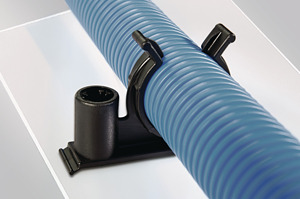 Befestigungselemente für Wellrohre für Nennweiten von 4,5-17 mm. Für M6 Schweißbolzen. Soft-Push-Mechanik für einfache, werkzeugfreie Montage. Sichere Führung des Rohres durch simples Einklicken. Axiales Verschieben wird durch Profil im Wellrohrhalter verhindert. Befestigungselement kann durch Abschrauben vom Schweißbolzen demontiert werden. Diese Halter werden z. B. in der Automobilindustrie, Kabelkonfektion und Elektroindustrie verwendet. Sie haben sich aufgrund der einfachen und zeitsparenden Montage überall dort durchgesetzt, wo Wellschläuche und Wellrohre sicher und schnell befestigt werden müssen.