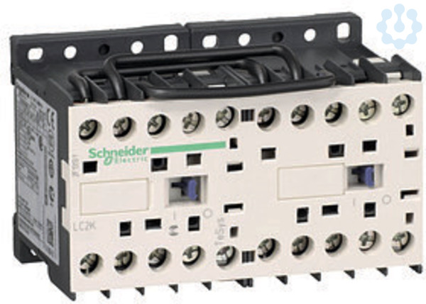 Wendeschütz TeSys LC2-K, 3p, AC-3 440V 9A, Spule 220...230 V AC. Baureihe: TeSys - Kurzbezeichnung des Geräts: LC2K - Anwendung des Schützes: Motorsteuerung, Widerstandslast - Nutzungskategorie: AC-1, AC-3, AC-4 - Erläuterungen zum Gerät: vorgefertigt mit reversierender Leistungssammelschiene - Beschreibung der Pole: 3P - Zus. des Polkontakts: 3 NO - Betriebsbemessungsspannung Ue: <= 690 V AC 50/60 Hz für Signalschaltkreis, 690 V AC 50/60 Hz für Hauptstromkreis - Nennbetriebsstrom Ie: 16 A (<= 70 °C) bei 690 V AC AC-1 für Hauptstromkreis, 20 A (<= 50 °C) bei <= 440 V AC AC-1 für Hauptstromkreis, 9 A bei <= 440 V AC AC-3 für Hauptstromkreis - Motorleistung (kW): 2.2 kW bei 220...230 V AC 50/60 Hz, 4 kW bei 380...415 V AC 50/60 Hz, 4 kW bei 440 V AC 50/60 Hz, 4 kW bei 480 V AC 50/60 Hz, 4 kW bei 500 ... 600 V AC 50/60 Hz, 4 kW bei 660...690 V AC 50/60 Hz - Aufbau der Hilfskontakte: 1 NO - Überspannungskategorie: III - knv. off. therm. Strom Ith: 10 A bei <= 50 °C für Signalschaltkreis, 20 A bei <= 50 °C für Hau