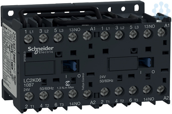 TeSys 3-polige Wendeschütze in kleiner Bauform. Wendeschützkombination, 6A, Spule 230 V 50/60Hz. Anschluss Schraubklemmen, Bemessungsleistung 2,2 kW, Hilfsschalter 1 S, MTZ 12. Gerätebreite 90 mm, Schraub- und Schnappbefestigung. 3-polig, je ein integrierter Hilfskontakt, erweiterbar um bis zu je vier Hilfskontakte. Hauptstromverdrahtung bereits durchgeführt. Bemessungsspannung 400 V, nach AC-3.