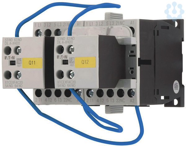 Wendeschützkombination, Applikation: Schützkombinationen für den Motorstart mit zwei Drehrichtungen, Zubehör: Wendekombinationen DIUL, Gebrauchskategorie: AC-3: Käfigläufermotoren: Anlassen, Ausschalten während des Laufes, AC-4: Käfigläufermotoren: Anlassen, Gegenstrombremsen, Reversieren, Tippen, Bemessungsbetriebsstrom AC-3 380 V 400 V: Ie= 7 A, max. Bemessungsbetriebsleistung Drehstrommotoren 50 - 60 Hz AC-3 220 V 230 V: P= 2.2 kW, 380 V 400 V: P= 3 kW, 660 V 690 V: P= 3.5 kW, Betätigungsspannung: 110 V 50 Hz, 120 V 60 Hz, Stromart AC/DC: Wechselstrombetätigung, Hinweis: Geeignet auch für Motoren der Effizienzklasse IE3
