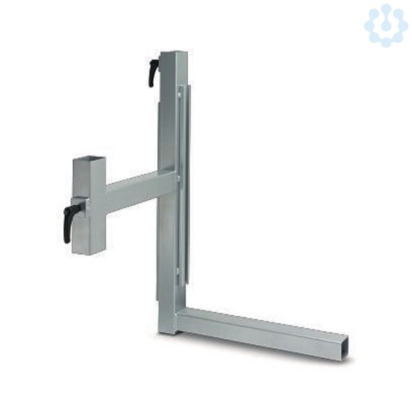 Geräteträgerarm links mit Klemmhebeln und Geräteträgerschiene, zur Aufnahme von bis zu 2 Geräteträgern und weiteren Ablagen an der AS-WORKBENCH-F ...