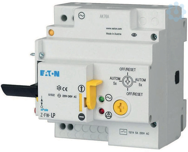 Konturkompatibles, nachträglich anbaubares Schaltgerät zum automatischen Wiedereinschalten und Fernschalten von CLS6, PFIM, PFHM-4p, dRCM, Z-A40, PFR, Z-MS, mechanisch verriegel- und plombierbar, mechanische Schaltfähigkeit bis max. PFIM-100/4p, CLS6-100/4p, Betriebs- und Alarmanzeige LED grün und rot, Funktionserweiterung mit Schaltmodul Z-FW-MO, Betrieb- und Störungsanzeige LED nur vormontiert mit Z-FW...