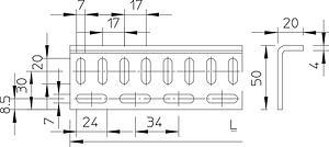 Winkelprofil mit doppelter Lochreihe zur Erstellung von Abhänge- und Tragkonstruktionen.