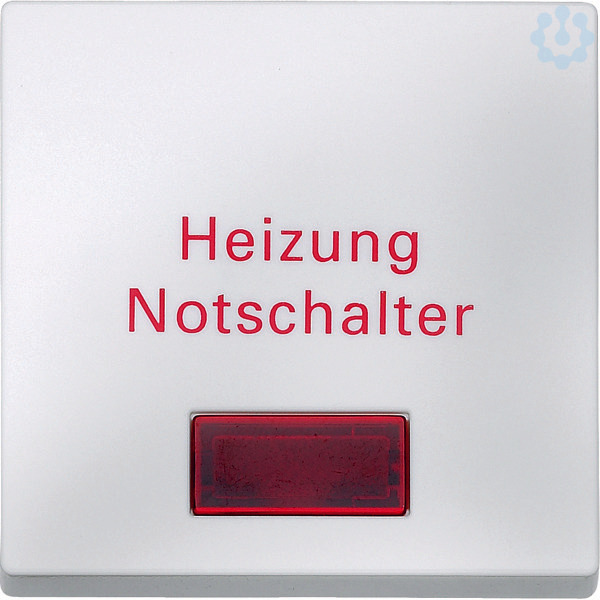 Für Kontrollschalter- und Taster-Einsatz. Mit rotem Kontrollfenster und Aufdruck /Heizung Notschalter/. Zu komplettieren mit Schalter und Taster, 1-fach. Material Duroplast hochkratzfest. Farbe polarweiß.