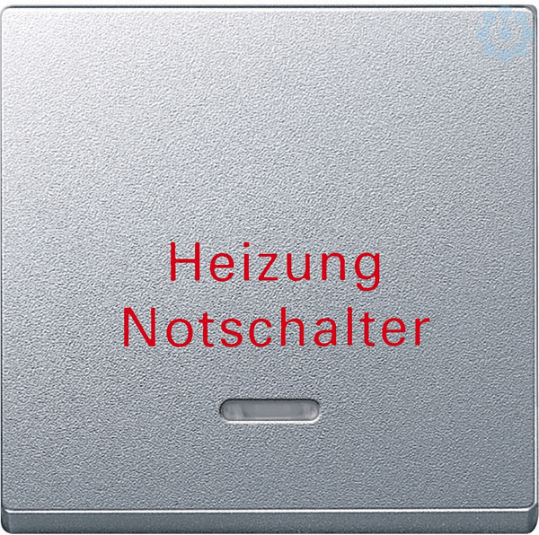 Für Kontrollschalter- und Taster-Einsatz. Mit Kontrollfenster und Kennzeichnung /Heizung Notschalter/. Zu komplettieren mit Schalter und Taster, 1-fach. Material Thermoplast edelmatt. Farbe aluminium.
