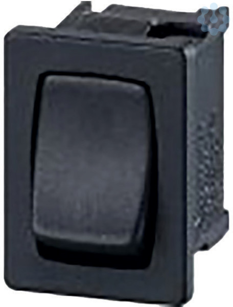 Einbau-Wippentaster Serie 3633 Farbe: schwarz 6(2)A, 250V, 1-polig, Schließer, T125°unbeleuchtet, Einbaumaß 19x13mm Flachsteckanschlüsse 4,8x0,8mm