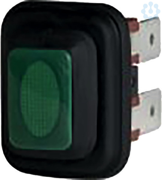 Einbau-Wippenschalter Serie 3658 16 (4) A, 250V, 2-polig, Ausschalter, T125° mit Beleuchtung, mit Gummidichtung Wasser- und Staubschutz gemäß IP65 Einbaumaß 19x13mm Flachsteckanschlüsse 6,3mm Gehäuse: schwarz Taste: grün bleuchtet