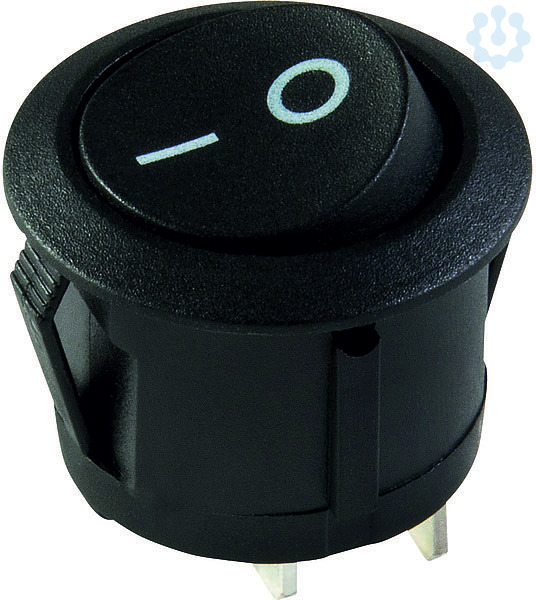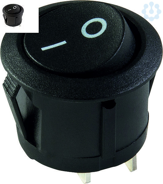 Interbär Wippenschalter Serie 3630 Farbe schwarz Ausschalter 6,5A, 85°C, 1-polig Flachsteckanschlüsse 4,8 x 0,8 mm, Einbaumaß 20 mm Ø verpackt im Polybeutel