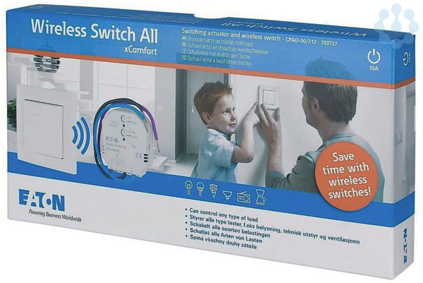 Vorprogrammiertes drahtloses Schaltpaket. Schaltet alle Arten von Lasten. Hybrid-Schalttechnik (langer Lebensdauer). Einfache Installation ohne größere Bauarbeiten. Drahtloser Druckknopf überall, wo Sie mögen. Kompatibel mit universellen 55mm Schaltanlagen.