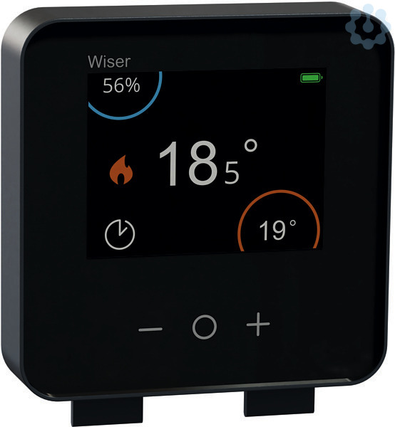 Fernzugriff und einfache Planung mit der Wiser Home App sind ebenfalls möglich. Wandmontage oder freies Aufstellen, Batteriebetrieb über 2x Alkaline-Batterien (AA).