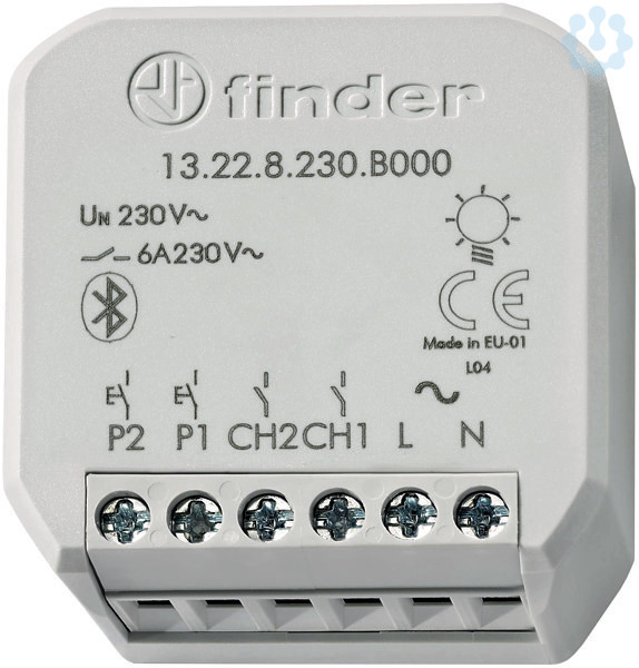 Multifunktionsrelais mit Bluetooth (YESLY-Schaltaktor) für Unterputzdosen-Montage, 2 Schließer für 6 A/250 V AC, Kontaktmaterial AgSnO², Versorgungsspannung: 230 V AC (50/60 Hz), Lampen-Last: 200 W/ 230 V AC