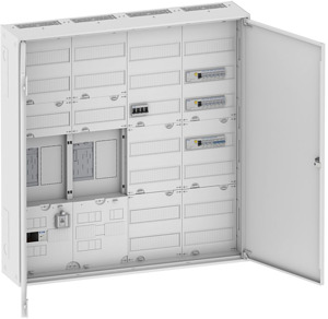 Zählerschrank eHZ 1.100 mm PV-Ready, Messkonzept in Kaskadenschaltung und mit Überschusseinspeisung, Bestückt + vorverdrahtet durch Eaton, Feldanzahl = 4, Zählerplätze vorverdrahtet = 2, Zählerplätze Reserve = 2, Zählerplätze Verdrahtung = 16mm², Verteilerreihen = 5+7, Sammelschienen 5-polig, HLAK 5-polig, Anschlussklemmen. Zählerbrett 1 (ZP1) für Zweirichtungszähler zur Überschusseinspeisung einer Erzeugungsanlage, Zählerbrett 2 (ZP2) für Haushaltszähler, Hauptschalter für Wärmepumpe, Ausreichend Platzreserve für Heimautomatisierung, Mit vorverdrahteten Schalt- und Schutzgeräten, Individuell erweiterbar