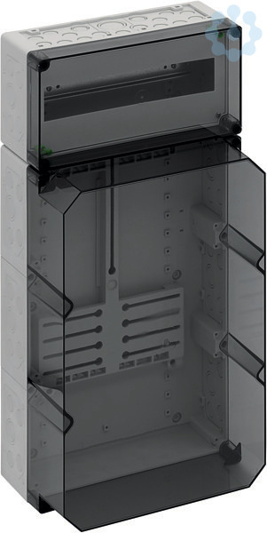 Zählergehäuse, Industrie Qualität, mit transparentem Deckel, serienmäßig plombierbar, mit montiertem Zählerkreuz für Drehstromzähler und Zählerbefestigungsschrauben, serienmäßig plombierbarer Konsumentenraum oben, mit 35mm Normschiene, mit Doppelmembranstutzen, Verschluss- und Isolierstopfen