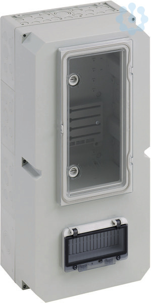 Zählergehäuse, Industrie Qualität, Deckel grau, serienmäßig plombierbar, mit transparentem Klappfenster, mit montiertem Zählerkreuz für Drehstromzähler und Zählerbefestigungsschrauben, mit zusätzlichem Klappfenster zur Bedienung eines selektiven Hauptschalters, inkl. 2 einpoligen HA-Klemmen 25/16qmm für N und PE, mit 35mm Normschiene zum Einbau eines selektiven Hauptschalters, mit Doppelmembranstutzen, Verschluss- und Isolierstopfen