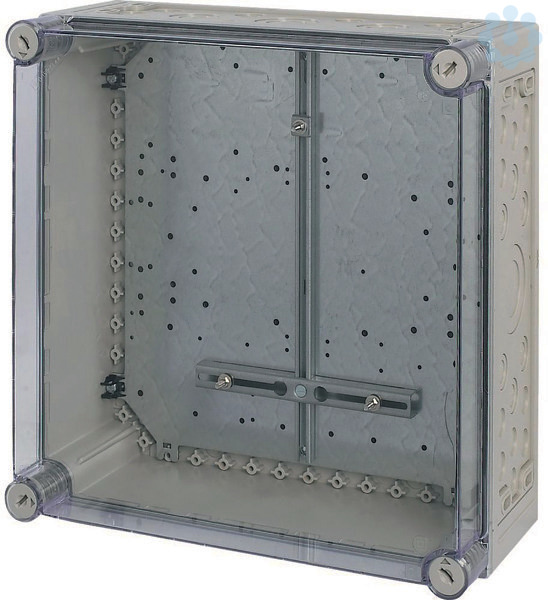 Zählergehäuse mit Zählerkreuz, Material Polycarbonat, schlagfest, patentierter Deckelverschluss mit integriertem Überdruckausgleich, Tiefe=175mm, metrische Vorprägungen in allen Seitenwänden, Befestigungslaschen für Wandbefestigung, plombierbare Deckelverschlüsse an der Deckeloberkante, Zählerkreuz nach DIN 43853 einschließlich Zählerbefestigungsschrauben und Muttern, Schutzart IP65, Ausführung Deckel: durchsichtig rauchgrau,