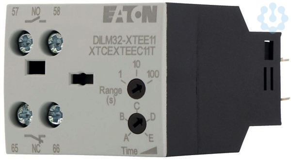 Zeitbaustein, ansprechverzögert, nicht kombinierbar mit Aufbauhilfsschaltern, inklusive Schutzbeschaltungen, Zeitbereiche umschaltbar, Sortiment: Zusatzausrüstung, Zeitbereich: umschaltbar, 0.05 - 1 s, 0.5 - 10 s, 5 - 100 s, Einbaulage: beliebig, außer hängend, Schutzart: IP20, Gewicht: 0.08 kg, verwendbar für: DILM7 - DILM38, DILMP20, DILMP32-DILMP45, DILA, DILMF7, DILMF11, DILMF14, DILMF25, DILMF32, Normen und Bestimmungen DIN EN 61812, IEC/EN 60947, VDE 0660, UL, CSA