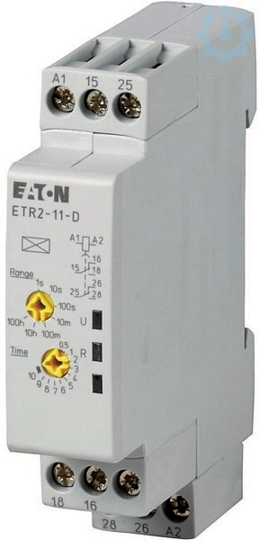 Elektronisches Zeitrelais ETR2 gemäß IEC/EN 61812-1, 17.5 mm breit, Zeitbereich 0,05s-100h, 2 Wechsler rückfallverzögert, mit 45mm Kappenmaß für den Einbau in Installationsverteiler geeignet