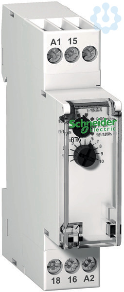 Zeitrelais Acti 9 iRTA Ansprechverzögerung. Betriebsspannung (Ue) 24-240V AC / 24V DC. Verzögert die Spannungsversorgung der Last.