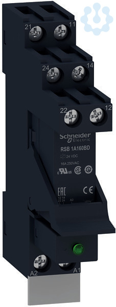 Zelio Relay. Vormontiertes und direkt einsetzbares Interface-Relais RSB bestehend aus Relais, Sockel, Schutzmodul mit LED-Anzeige, Haltebügel und Beschriftungsschild. Anzahl Kontakte- 1, Ausführung- Relaiswechsler, Kontaktbelastbarkeit- 16 A. Spulen-Steuerspannung- 24 VDC. Stecksockel mit Schraubklemmen in getrennter Anordnung zur Montage auf Hutschiene oder aufschraubbar auf Montageplatte. Schutzmodul- Diode. Kunststoffhaltebügel zur Fixierung und einfachen Entnahme des Relais. Beschriftungsschild zur Kennzeichnung. Alle Komponenten sind einsatzfertig montiert und das vormontierte Relais kann sofort eingesetzt werden.