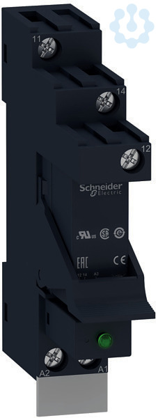 Zelio Relay. Vormontiertes und direkt einsetzbares Interface-Relais RSB bestehend aus Relais, Sockel, Schutzmodul mit LED-Anzeige, Haltebügel und Beschriftungsschild. Anzahl Kontakte- 1, Ausführung- Relaiswechsler, Kontaktbelastbarkeit- 12 A. Spulen-Steuerspannung- 24 VAC. Stecksockel mit Schraubklemmen in getrennter Anordnung zur Montage auf Hutschiene oder aufschraubbar auf Montageplatte. Schutzmodul- Varistor. Kunststoffhaltebügel zur Fixierung und einfachen Entnahme des Relais. Beschriftungsschild zur Kennzeichnung. Alle Komponenten sind einsatzfertig montiert und das vormontierte Relais kann sofort eingesetzt werden.