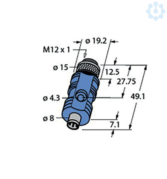 8mm, robuster, kunststoffumspritzter Adapter, Kupplung M12 x 1 - Stecker Ã