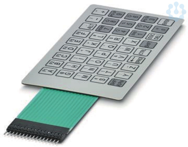 Folientastatur selbstklebend, Silberleittechnik, 45 Tasten, hochgeprägt, 4 Farben, Anschlusskabel: 77 mm, mit Crimp-Buchse female Rastermaß: 2,54 mm, Einsatztemperatur: -20 °C ... 70 °C