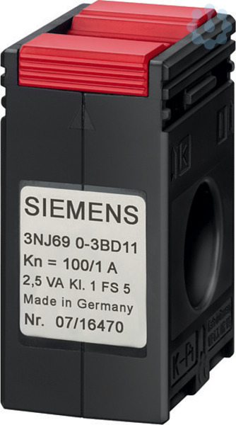 Zubehör für 3NJ62/63 Lasttrennschalter mit Sicherungen Leistenbauform, steckbar, NH1 Stromwandler 200/1A, Kl. 0,5, geeicht Durchführungsöffnung 14mm