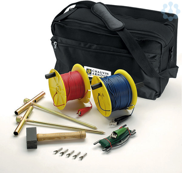 Die Zubehörsets für Erdungsmessung umfassen 1, 2 oder 4 Erder, 3 oder 4 Haspeln mit farbigen Kabeln verschiedener Länge (50 m, 100 m, 150 m), 1 Hammer , 5 Adapter mit Gabelschuhen /Bananenstecker und die Transporttasche. Ein Zubehörset mit 3 Erdern kann durch ein Zubehörset zur Bodenwiderstandsmessung (100 m) mit 2 Haspeln und 2 Erdern ergänzt werden. Das Zubehörset für Durchgangsprüfungen umfasst 4 Messleitungen mit Bananenstecker (4 mm) , 4 Krokodilklemmen und 2 Prüfspitzen.