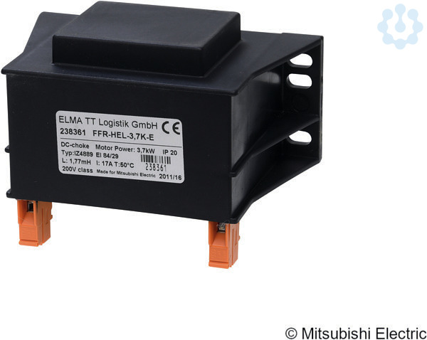 Die Zwischenkreisdrossel FFR-HEL erfüllt die Anforderungen des Standards EN 61558. Durch das Hinzufügen der optionalen DC-Zwischenkreisdrossel in ein Frequenzumrichter-System wird die Einhaltung der EN 61000-3-12 erreicht. Motorausgangsleistung 3,7 kW, Verlustleistung 19,8 W.