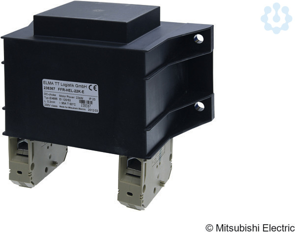 Die Zwischenkreisdrossel FFR-HEL erfüllt die Anforderungen des Standards EN 61558. Durch das Hinzufügen der optionalen DC-Zwischenkreisdrossel in ein Frequenzumrichter-System wird die Einhaltung der EN 61000-3-12 erreicht. Motorausgangsleistung 22 kW, Verlustleistung 44,1 W.
