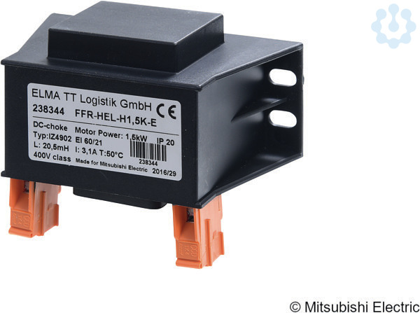 Die Zwischenkreisdrossel FFR-HEL erfüllt die Anforderungen des Standards EN 61558. Durch das Hinzufügen der optionalen DC-Zwischenkreisdrossel in ein Frequenzumrichter-System wird die Einhaltung der EN 61000-3-12 erreicht. Motorausgangsleistung 1,5 kW, Verlustleistung 15,2 W.