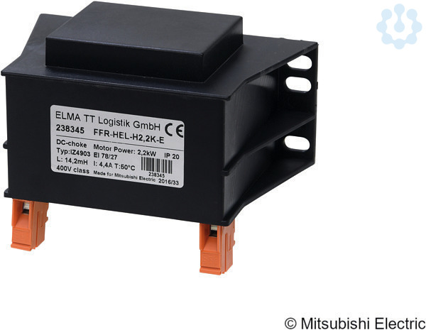 Die Zwischenkreisdrossel FFR-HEL erfüllt die Anforderungen des Standards EN 61558. Durch das Hinzufügen der optionalen DC-Zwischenkreisdrossel in ein Frequenzumrichter-System wird die Einhaltung der EN 61000-3-12 erreicht. Motorausgangsleistung 2,2 kW, Verlustleistung 17,8 W.