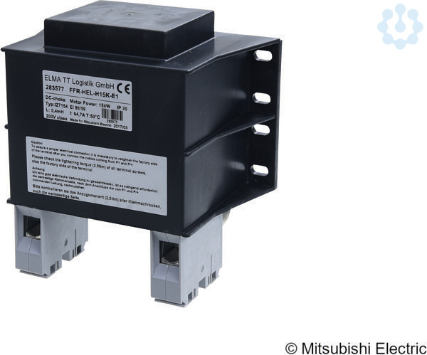 Die Zwischenkreisdrossel FFR-HEL erfüllt die Anforderungen des Standards EN 61558. Durch das Hinzufügen der optionalen DC-Zwischenkreisdrossel in ein Frequenzumrichter-System wird die Einhaltung der EN 61000-3-12 erreicht. Motorausgangsleistung 15 kW, Verlustleistung 35,5 W.