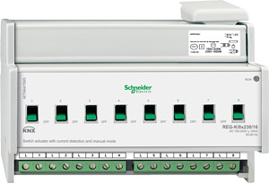 Schaltaktor REG-K/8x230/16 mit Hand betätigung und Stromerkennung, lichtgrau