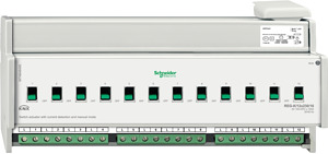 Schaltaktor REG-K/12x230/16 mit Han dbetätigung und Stromerkennung, lichtgra