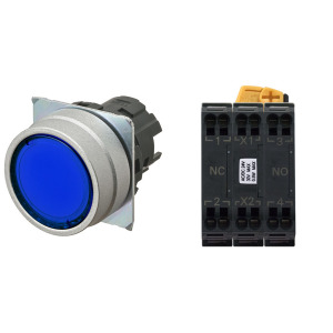 Leuchtdrucktaster 16mm blau 1S Druckknopf flach